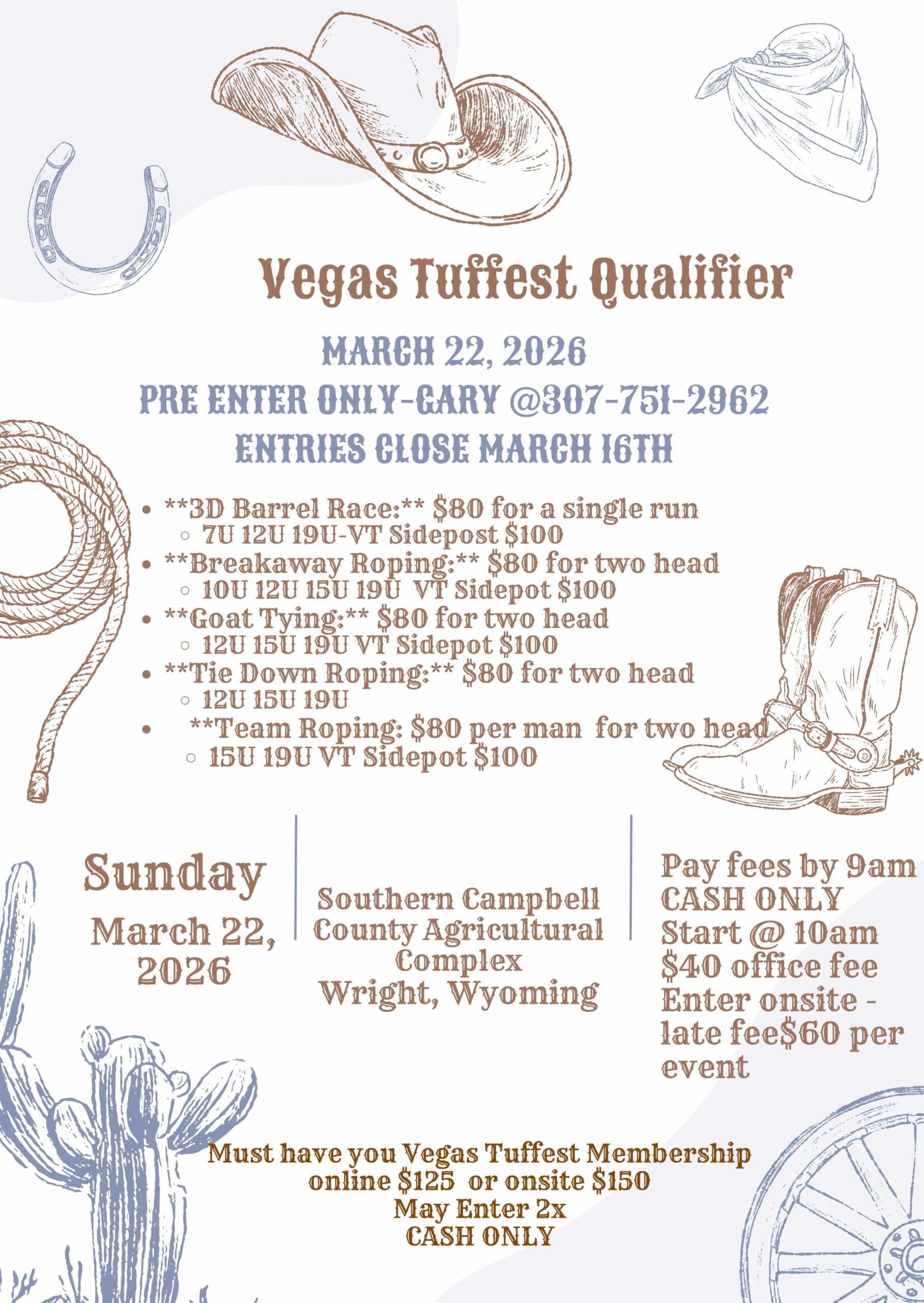 | 3/22/2026 | Wright | Wyoming | Southern Campbell County Agricultural Complex | Gary Mefford | 307-751-2962 | FLYER |