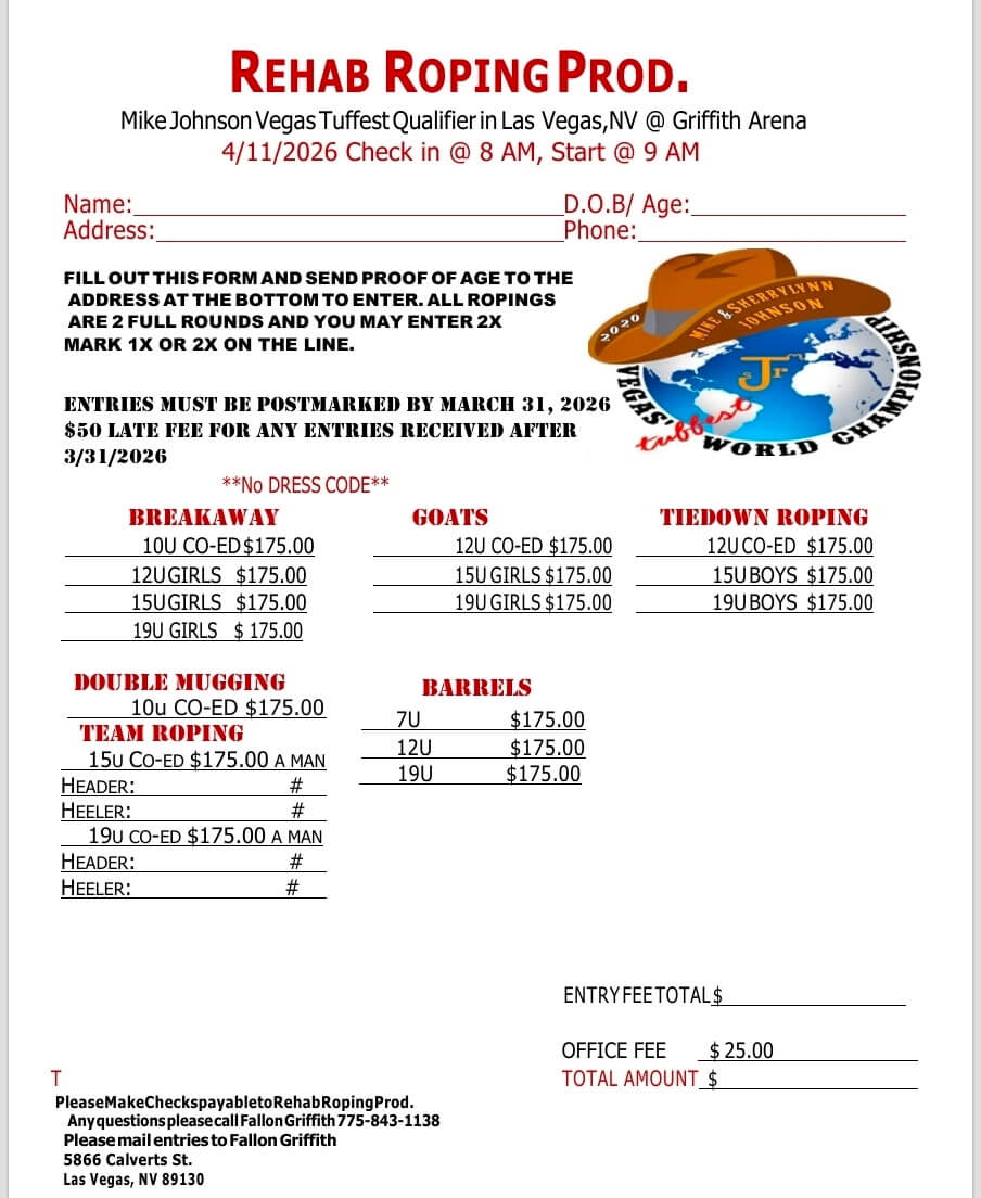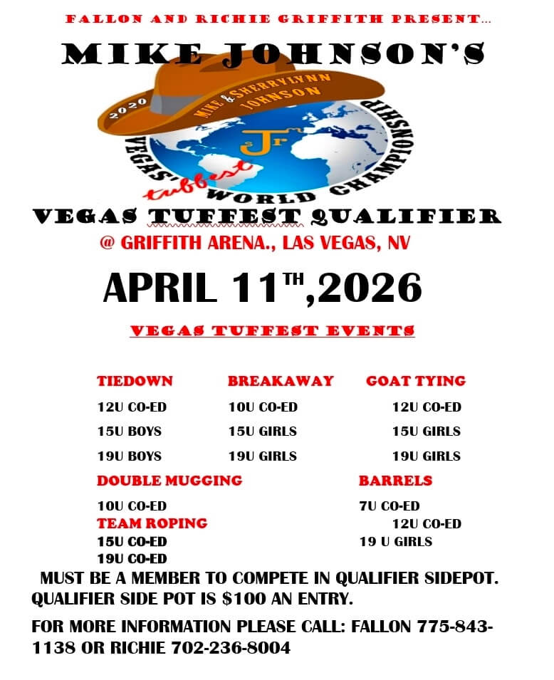 | 4/10-11/2026 | Las Vegas | Nevada | Fallon Griffith | 775-843-1138 | FLYER ENTRY |