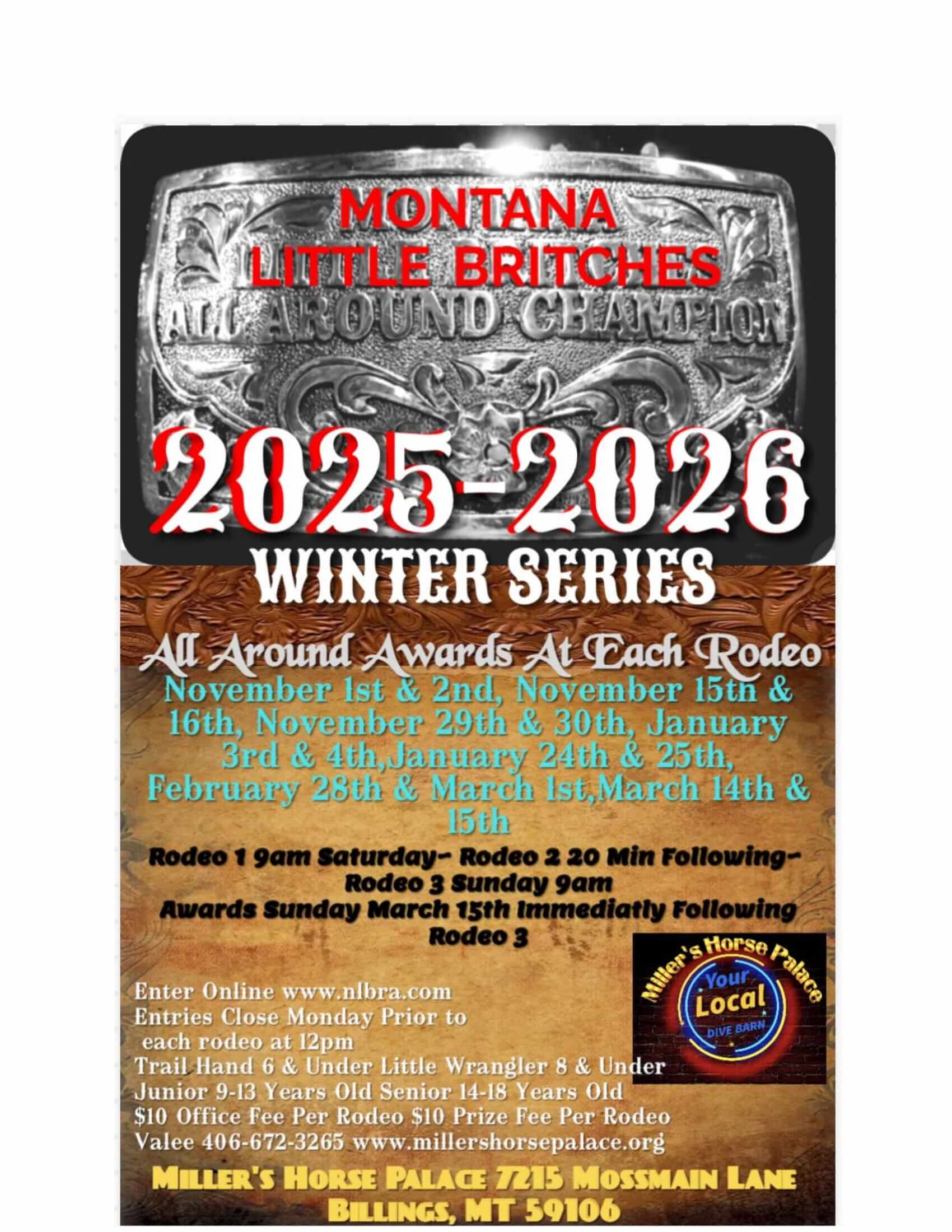 | 2/28-3/1/2026 | Billings | Montana | Miller's Horse Palace | Jill Zakotnik | 563-265-9930 | FLYER ADDITIONAL INFO |