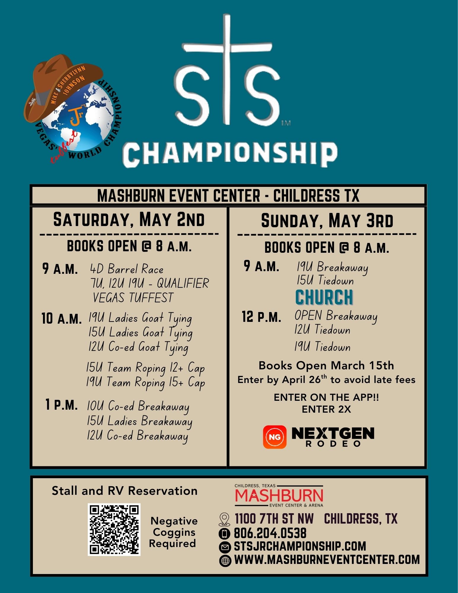 | 5/2-3/2026 | Childress | Texas | STS Championship VT | Sheabree Nix | 806-204-0538 | FLYER |
